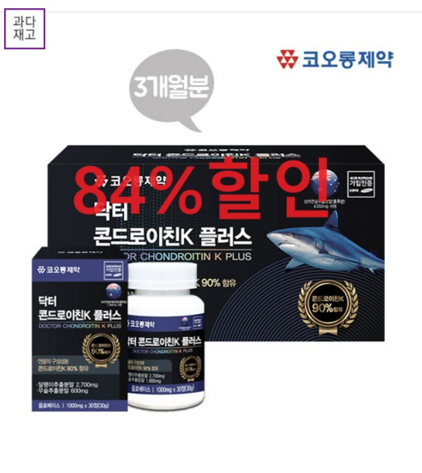 상어연골추출분말의 효능과 콘드로이친K 90% 함유의 중요성, 그리고 코오롱제약 닥터 콘드로이친K 플러스와 이유몰 84% 할인 혜택