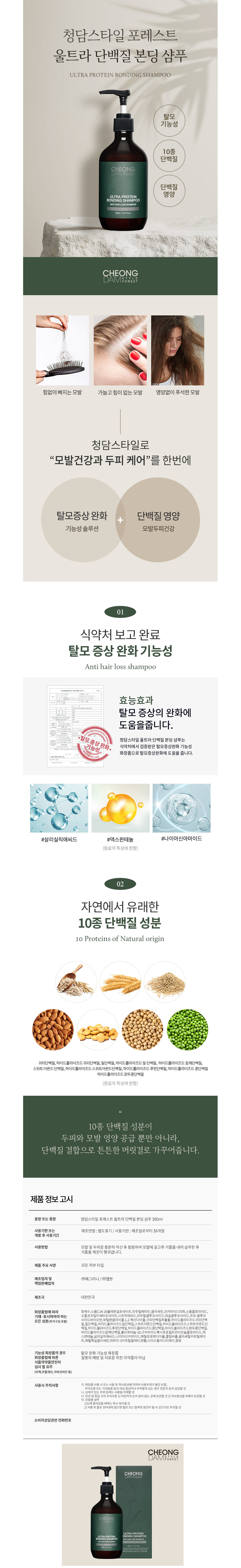 청담스타일 포레스트 울트라 단백질 본딩 샴푸는 이러한 성분들을 통해 모발을 건강하게 관리할 수 있는 제품입니다